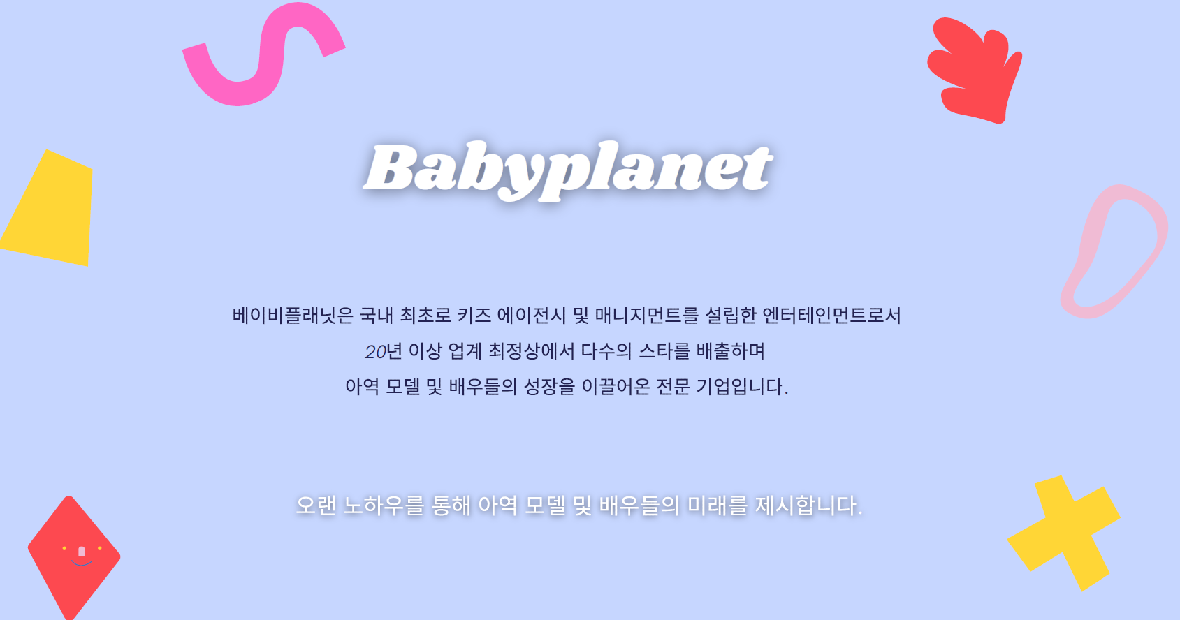 베이비플래닛은 국내 최초로 키즈 에이전시 및 매니지먼트를 설립한 엔터테인먼트로서