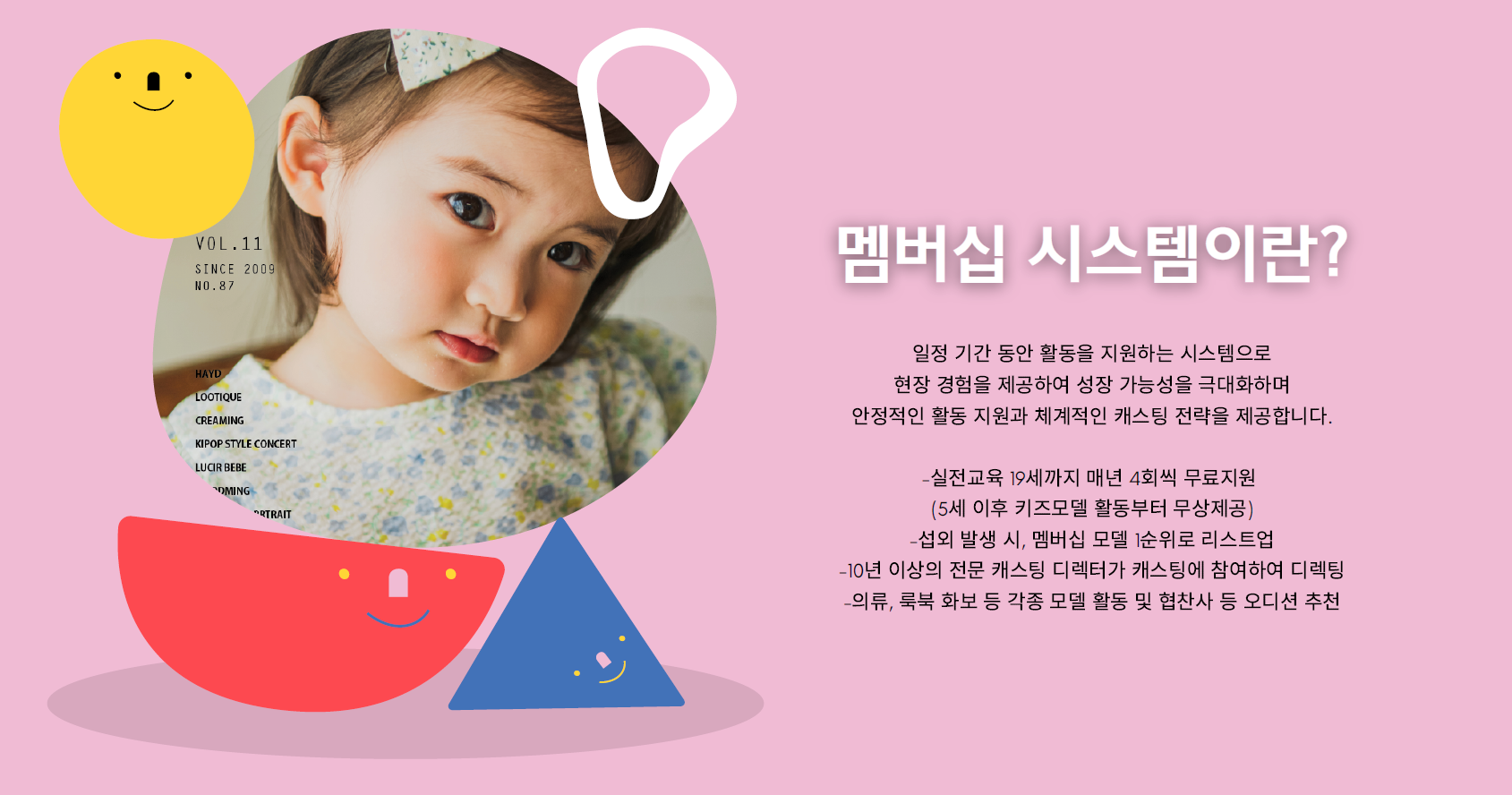 아역 모델 및 배우들의 성장을 이끌어온 전문 기업입니다.